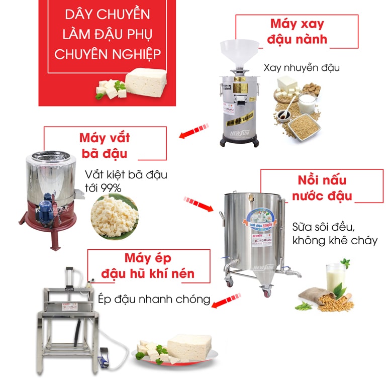 Khi đầu tư máy ép đậu hũ Việt Nam bằng lò xo phục vụ công việc làm đậu phụ, bạn nên tham khảo cả bộ dây chuyền máy làm đậu mà NEWSUN hiện đang cung cấp nhằm hỗ trợ tốt và hiệu quả nhất cho công việc kinh doanh.