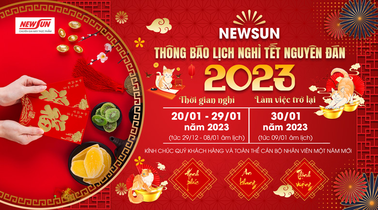 Vậy là năm mới Quý Mão 2023 đang đến rất gần, đầu tiên Điện máy thực phẩm NEWSUN xin được phép gửi lời cảm ơn chân thành nhất đến với Quý khách hàng, Quý NPP/Đại lý, Quý đối tác cùng toàn thể CBNV đã đồng hành cùng công ty trong suốt thời gian qua. Để […]