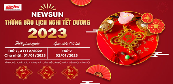 Kính gửi: Quý khách hàng, Quý NPP/Đại lý, Quý đối tác cùng toàn thể cán bộ nhân viên Công ty. Trước hết, NEWSUN xin gửi lời cảm ơn chân thành đến các Quý khách hàng, Quý đối tác cùng toàn thể cán bộ công nhân viên đã đồng hành cùng Công ty chúng tôi trong […]