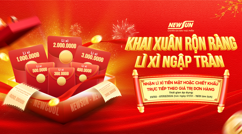 Chào xuân 2026 ngập tràn may mắn, Điện Máy NEWSUN trân trọng gửi đến Quý khách hàng chương trình ưu đãi đặc biệt đầu năm: “Khai Xuân Rộn Ràng – Lì Xì Ngập Tràn”. Đây là dịp vàng để sở hữu thiết bị hiện đại với lì xì tiền mặt lên tới 3.000.000đ hoặc chiết khấu trực tiếp vào đơn hàng, giúp tiết kiệm chi phí tối đa khi đầu tư đầu năm.