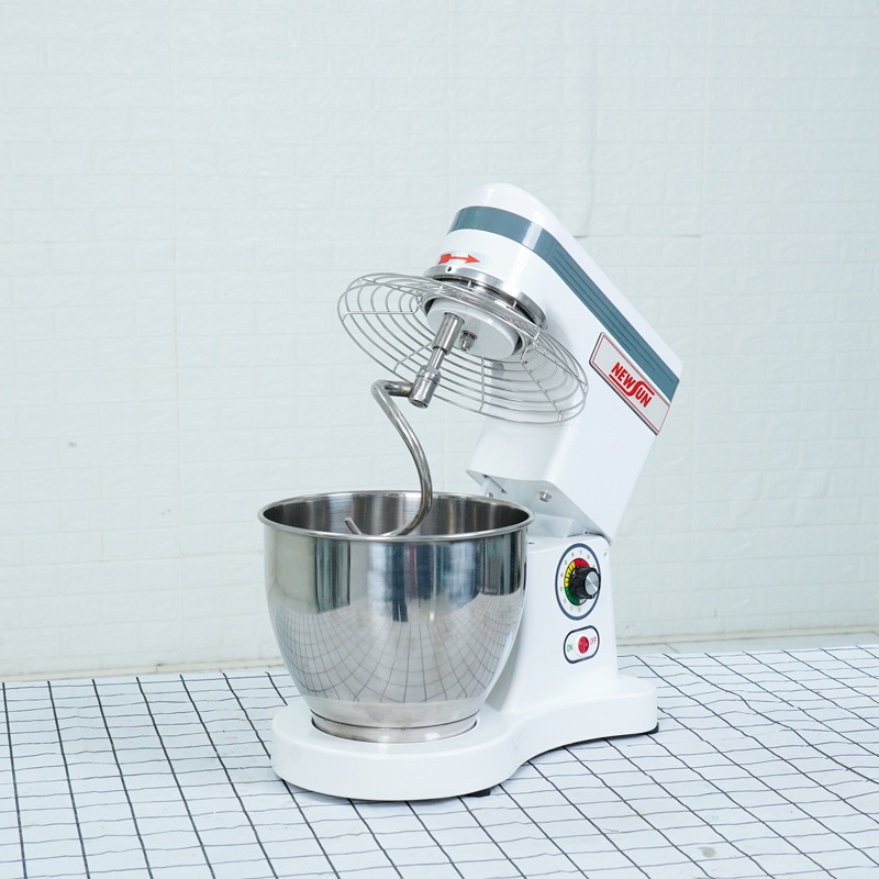 Lưu ý: Máy đánh kem trứng NEWSUN B-7C có thể trộn bột làm bánh mì nhưng chỉ trộn được 1 lượng nhỏ (tối đa 0,5 – 0,7kg bột thành phẩm/mẻ), tránh trộn quá công suất làm ảnh hưởng đến độ bền của động cơ. Nếu cần trộn bột mì sản lượng lớn và thường xuyên thì bạn hãy tham khảo dòng máy trộn bột mì công nghiệp chuyên dụng.