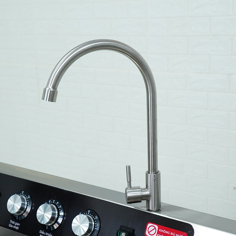 - Vòi nước inox 304 có thể xoay 360° giúp người dùng linh hoạt trong việc cấp nước, xả rửa và vệ sinh khoang máy.