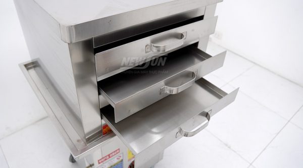 Hơn nữa, máy có tới 3 khay có thể tráng luôn phiên. Trong khi đợi khay bên trên hấp chín, bạn có thể cho bột bánh vào khay dưới để tiếp tục tráng. Ưu thế này giúp người dùng có thể nâng cao hiệu suất làm việc, cho năng suất lớn hơn so với nồi tráng bánh cuốn phổ thông.