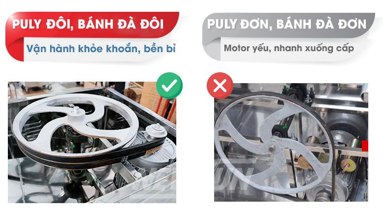 Puly đôi và bánh đà đôi giúp máy vận hành ổn định hơn
