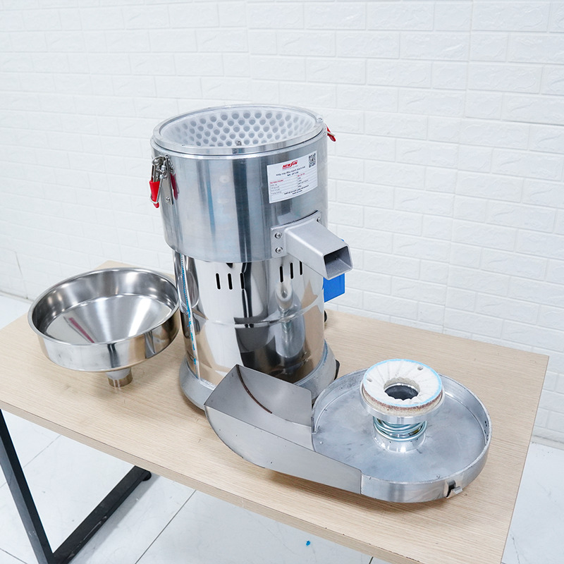 Ngoài ra, phễu tiếp liệu, lưới lọc và cửa xả đều có thể tháo rời, hỗ trợ vệ sinh nhanh sau mỗi lần vận hành.