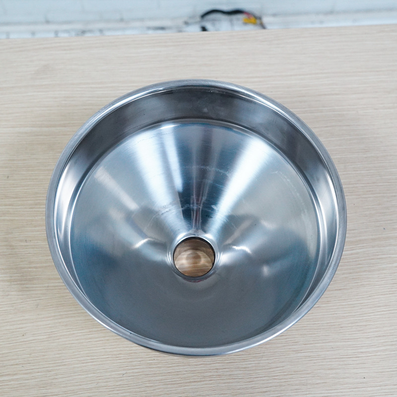 - Phễu tiếp nguyên liệu được làm từ inox 201, có độ cứng tốt, hạn chế han gỉ khi tiếp xúc thường xuyên với nước.