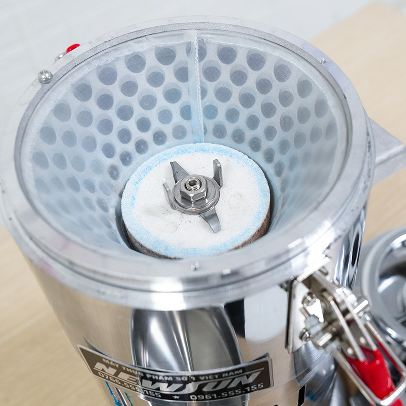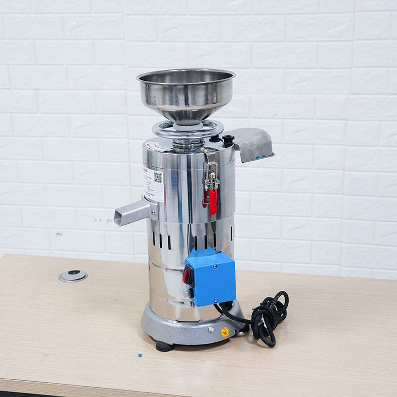 Trong quá trình vận hành, đậu và nước được nghiền nhuyễn cùng nhau, tạo thành hỗn hợp sữa đậu mịn và đồng đều. Sau đó, phần sữa sẽ đi qua lưới lọc và được dẫn ra ngoài qua cửa thành phẩm, trong khi phần bã được giữ lại trên lưới và thoát ra ngoài qua cửa xả bã riêng biệt.