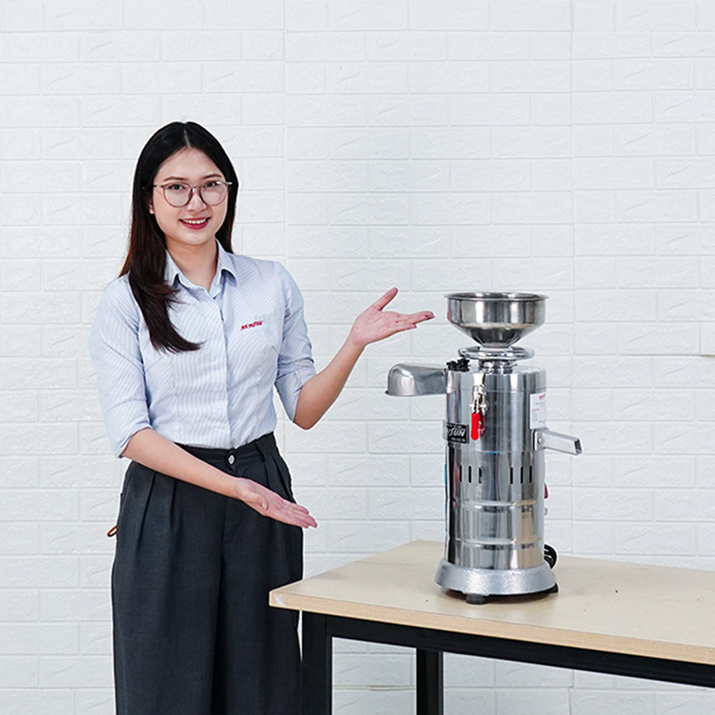 Máy có thể hoạt động liên tục với năng suất lên đến 15kg/giờ, đáp ứng tốt nhu cầu sử dụng tại các quán sữa đậu, quán tào phớ hoặc các cơ sở chế biến đậu nành quy mô nhỏ.
