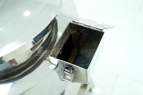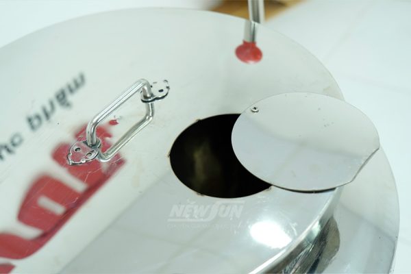 Đặc biệt, nắp cối máy xay giò chả NEWSUN được dập nguyên khối giúp tăng tính thẩm mỹ và độ cứng cáp vượt trội hơn hẳn loại nắp máy hàn ghép thủ công trên thị trường. Trên nắp còn có một lỗ tra phụ gia nhỏ, bạn chỉ cần mở nắp lỗ và cho phụ gia vào, rất an toàn và tiện lợi.
