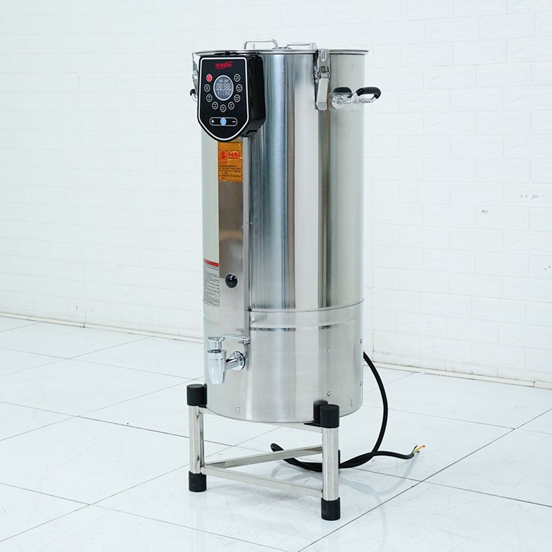 Máy được trang bị vòi rót sữa trực tiếp, tay cầm chắc chắn và nắp nồi có chốt khóa an toàn. Những chi tiết này giúp việc sử dụng trở nên thuận tiện hơn, đồng thời đảm bảo an toàn khi vận hành với dung tích lớn.