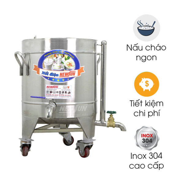 Toàn bộ nồi đều được chế tạo từ chất liệu 304 cao cấp, bền bỉ, chịu nhiệt và chống ăn mòn, han gỉ tốt. Do đó, nồi điện nấu cháo NEWSUN vừa đảm bảo an toàn vệ sinh, độ bền cao lên đến cả chục năm.