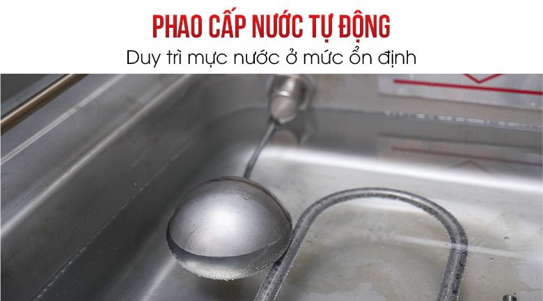 Phao tự động cấp nước có nhiệm vụ duy trì mực nước ngập thanh nhiệt, giúp tiết kiệm thời gian. Ngoài ra, tủ ủ bột 1 buồng 16 khay còn tích hợp tính năng tự động ngắt khi hết nước, đảm bảo an toàn và không lo cháy thanh nhiệt trong quá trình sử dụng.